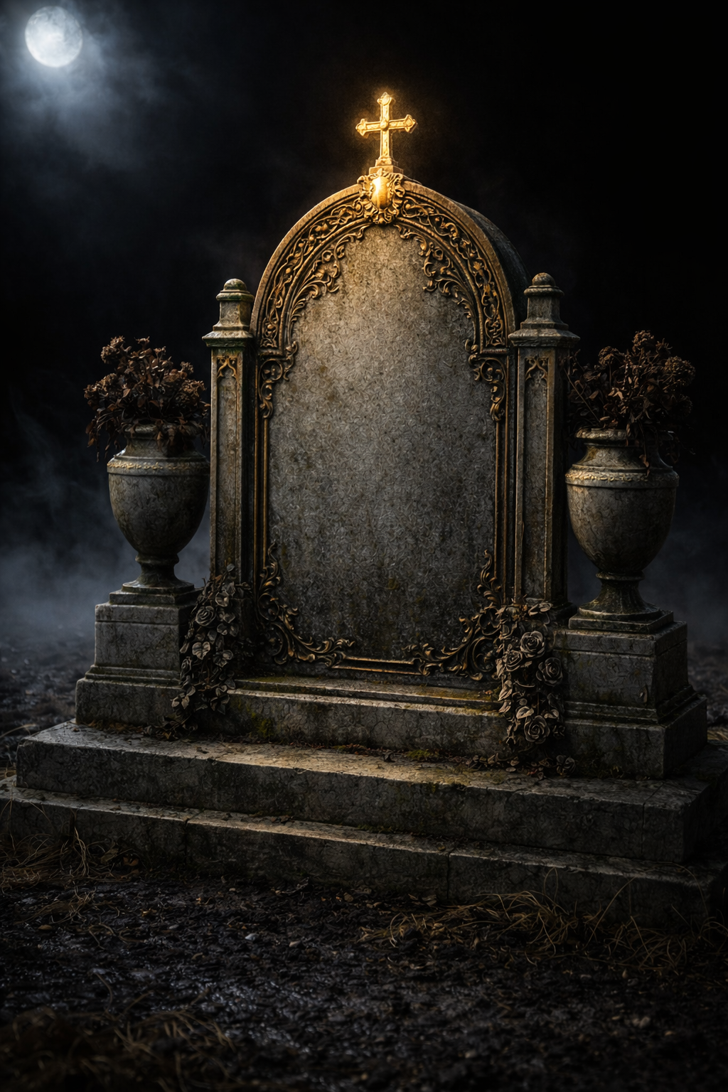Ornate cross with urns